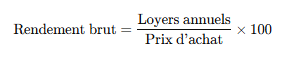 Rentabilité | Rendements, cash-flow | 5 % à 10 % selon villes |